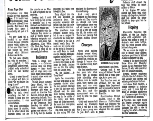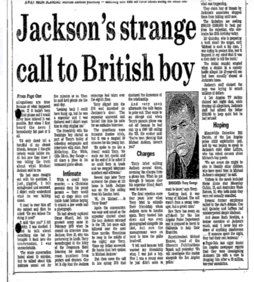 Dio prvi počinje pismom datiranim iz septembra 1993. godine. Pismo je ‘pružilo osnovne informacije o člancima koji su se pojavili u britanskoj štampi u vezi s britanskim državljaninom koji je tvrdio da mu je Jackson 1979. godine uputio ‘nepristojan telefonski poziv’. Britanac o kojem je riječ bio je čovjek po imenu Terry George: