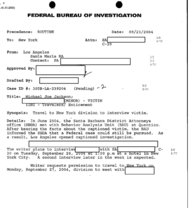 Šta je tačno LAPD želio da FBI pomogne? Da pomogne u procesuiranju Jacksona zbog kršenja Mannovog zakona, koji zabranjuje prevoz bilo koga preko državnih granica u svrhu nezakonitih seksualnih radnji. LAPD je odmah odbijen.