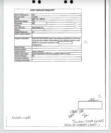 Sada se možda pitate šta je to CART zahtjev za uslugu. CART je FBI-ev Tim za računalnu analizu i odgovor (Computer Analysis Response Team), a njihov zadatak je bio da izvrše forenzičku analizu nekoliko Jacksonovih računara i šesnaest tvrdih diskova.